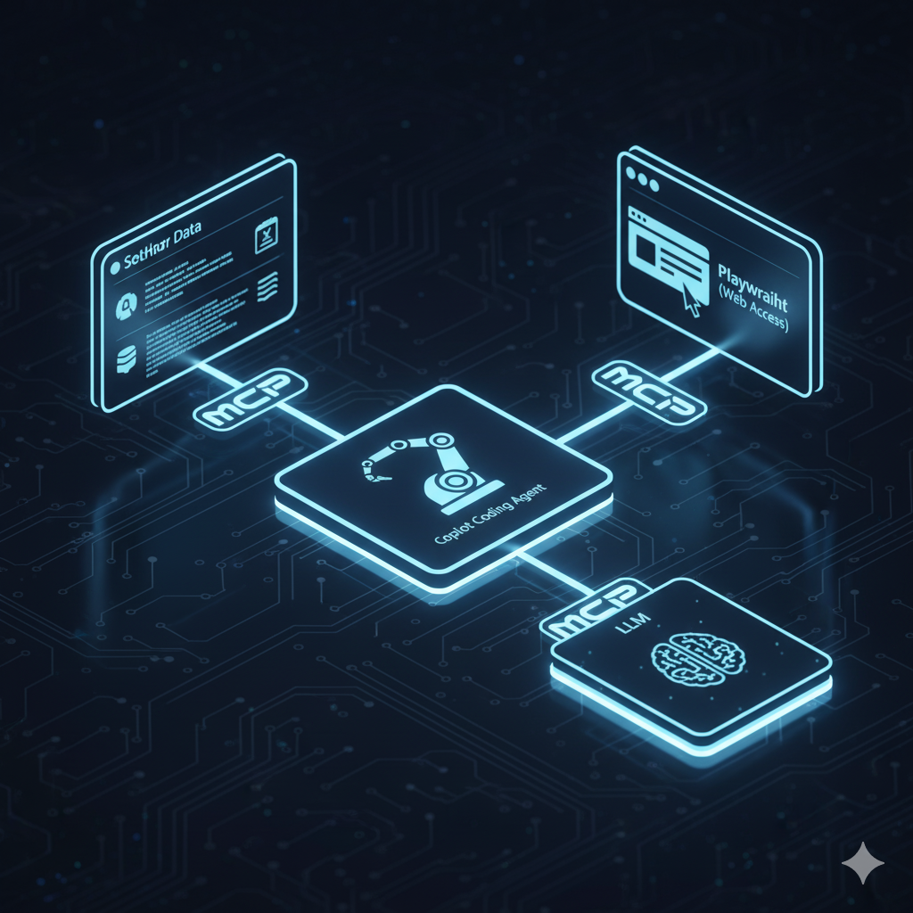 Model Context Protocol (MCP) ซึ่งเป็นมาตรฐานเปิดที่กำหนดวิธีการที่แอปพลิเคชันแบ่งปันบริบทกับ LLMs 9 MCP ช่วยให้ AI เชื่อมต่อกับแหล่งข้อมูลและเครื่องมือต่างๆ ได้อย่างเป็นมาตรฐาน เช่น การเข้าถึงข้อมูล GitHub หรือการเข้าถึงเว็บเพจผ่าน Playwright 9