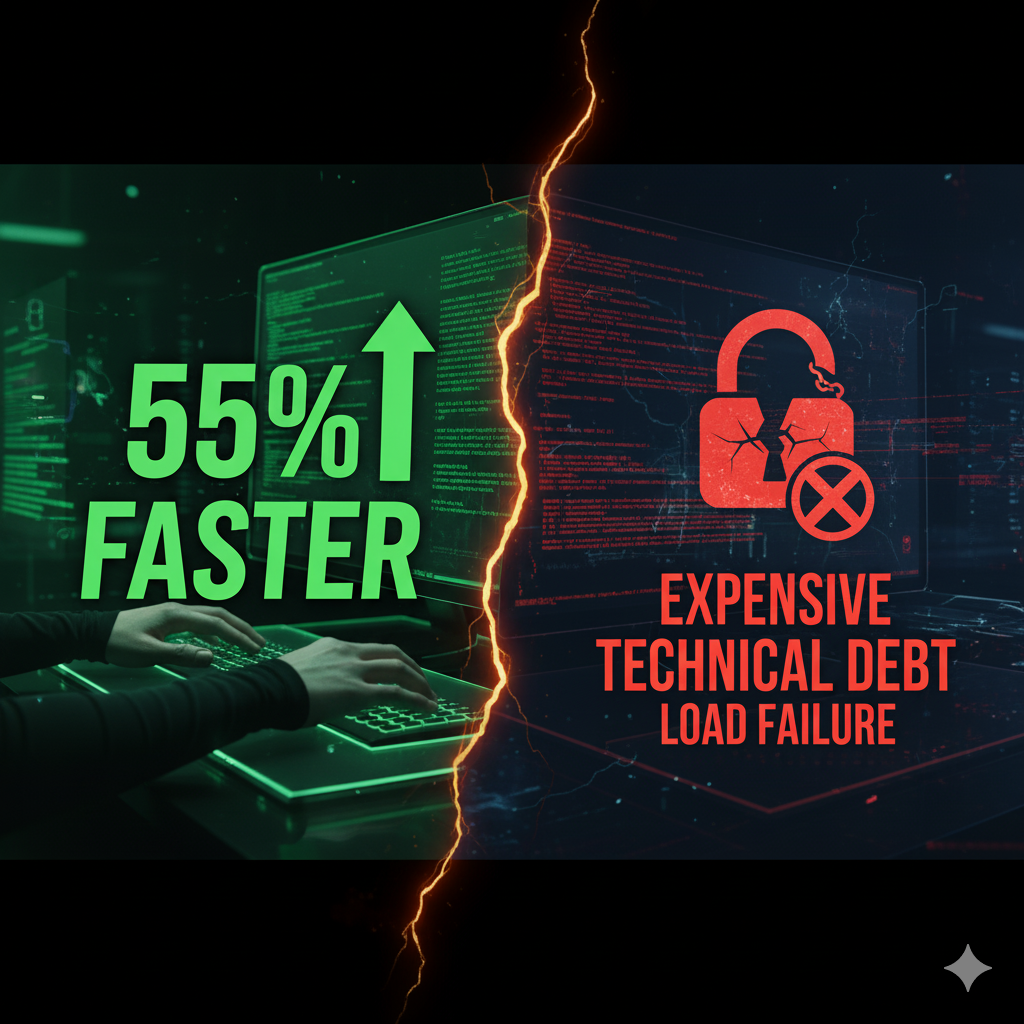 AI โค้ดดิ้งมอบผลผลิตที่เพิ่มขึ้นอย่างมหาศาล ซึ่งมีการรายงานว่าสามารถเร่งความเร็วในการทำงานบางอย่างได้เร็วขึ้นถึง 55% 1 นอกจากนี้ ยังช่วยให้สามารถสร้างระบบที่ซับซ้อน (เช่น ระบบที่ใช้ฐานข้อมูล SQLite) ได้ภายในเวลาไม่กี่ชั่วโมง จากเดิมที่ต้องใช้เวลาหลายวันในการพัฒนาด้วยตนเอง 1 อย่างไรก็ตาม ความเร็วที่เพิ่มขึ้นนี้มาพร้อมกับความเสี่ยงที่ซ่อนอยู่และมีค่าใช้จ่ายสูง ซึ่งถูกเรียกว่า “หนี้ทางเทคนิคราคาแพงที่รอการปะทุ” 1 ความผิดพลาดที่เกิดจาก AI นั้นมักจะ “ละเอียดอ่อนแต่ร้ายแรง” และจะปรากฏออกมาก็ต่อเมื่อระบบถูกใช้งานจริงในสภาพแวดล้อมการผลิตเท่านั้น 1