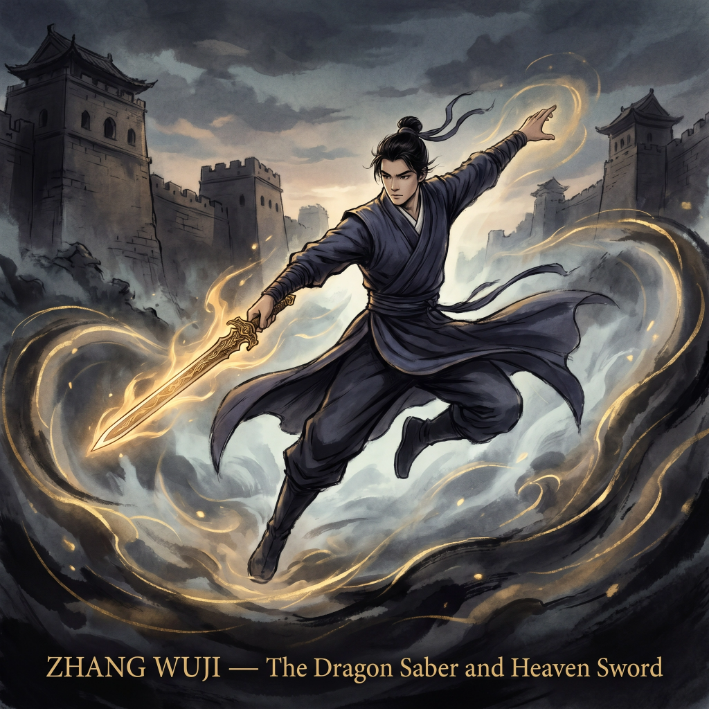 เรื่องราวเกิดขึ้นในช่วงปลายราชวงศ์หยวน (มองโกล) ประมาณกลางศตวรรษที่ 14 โดยมีอาวุธสองชิ้นเป็นศูนย์กลางของเรื่อง คือ กระบี่อิงฟ้า และ ดาบฆ่ามังกร ซึ่งเชื่อกันว่าผู้ครอบครองจะสามารถครองยุทธภพได้